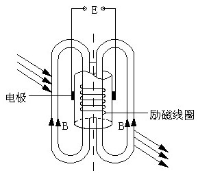 插入式電磁流量計(jì)傳感器實(shí)際上是一種液體流速測(cè)量儀表。它是應(yīng)用法拉第電磁感應(yīng)定律的原理制成的流速測(cè)量儀表。下圖是插入示電磁流量計(jì)基本工作原理的示意圖。用一個(gè)長桿將一個(gè)小的電磁流量傳感器插入到被測(cè)量管道中規(guī)定的位置,導(dǎo)電流體垂直流過傳感器的工作磁場(chǎng)時(shí)(轉(zhuǎn)換器向傳感器提供勵(lì)磁電流時(shí),在勵(lì)磁線圈構(gòu)成的勵(lì)磁系統(tǒng)中便產(chǎn)生工作磁場(chǎng)),相當(dāng)于導(dǎo)體在磁場(chǎng)中作切割磁力線運(yùn)動(dòng)。根據(jù)法拉第電磁感應(yīng)定律可知,在導(dǎo)體的兩端產(chǎn)生感應(yīng)電動(dòng)勢(shì)。此感應(yīng)電動(dòng)勢(shì)由接觸流體的一對(duì)電極來檢測(cè)。電動(dòng)勢(shì)的大小與磁感應(yīng)強(qiáng)度B、兩極間距離L和流體的平均流速呈正比。即
