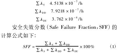 根據元器件失效模式和影響分析(FMEA),測試計算出各可靠性塊的安全失效率λS、可檢測危險失效率λDD和不可檢測危險失效率λDU的總和如下: