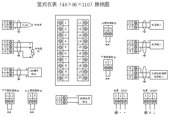 熱電偶: K、E、S、B、J、T、R、WRe3-25;冷端溫度自動補償范圍0~50℃,補償準確度±1℃。