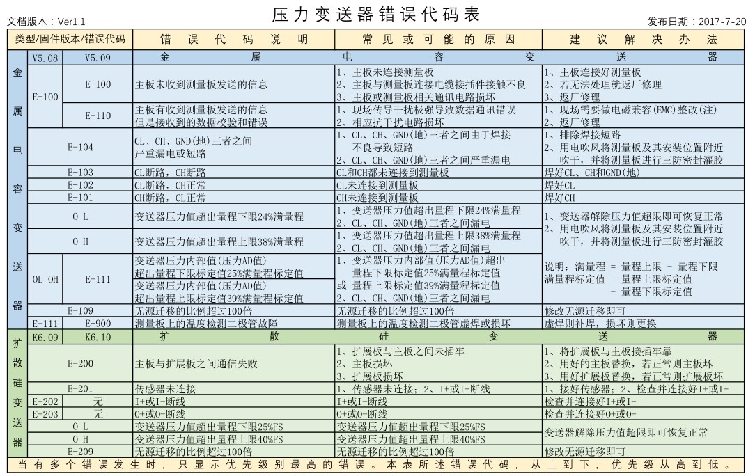 六、雙法蘭液位變送器主機操作錯誤代碼參考說明: